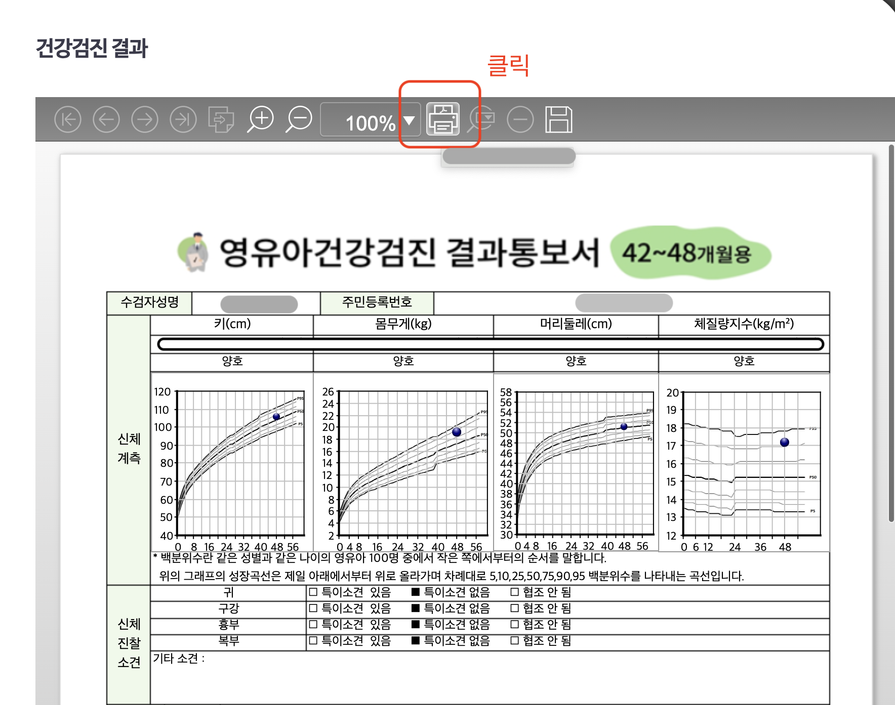 건강 iN -> 가족건강관리 -> 자녀(영유아) 건강검진정보 -> 영유아 건강검진 결과조회