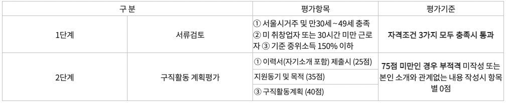 □ 선정방법 : 자격조건 서류검토 및 구직활동계획 평가